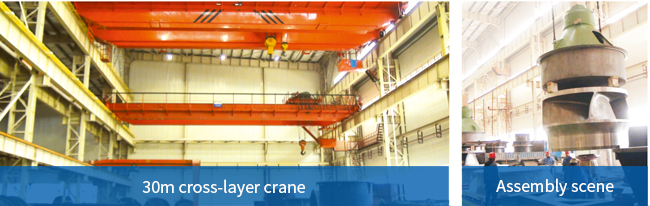 The 30m cross-layer crane in the assembly workshop has three layers. The maximum load crane is 75T, and the deepest assembly hole is 15m, which can adapt to the assembly of pumps of different sizes and shapes.